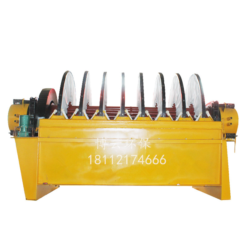 PG系列盤式真空過濾機(jī) (1)扇形濾板脫水孔分布均勻,孔率合理,筋條尺寸大,由高強(qiáng)度工程塑料制成,壽命提高了2-3倍。 (2)濾液管過濾數(shù)面大,分配頭腹腔容積大,提高了抽氣率和濾液排放效果。 (3)耐磨錦綸、單或復(fù)絲濾布使脫餅率高且不易堵塞,使用壽命長(zhǎng)。 (4)多點(diǎn)干油泵集中多點(diǎn)自動(dòng)潤(rùn)滑。 (5)濾布自動(dòng)清洗裝置,保持了其良好的脫水效果。 (6)臥式強(qiáng)制高速攪拌、軸端采用橡膠及石墨盤根和水壓差三重密封不漏漿。 (7)主傳動(dòng)無級(jí)變速,依物料的濃度及流量調(diào)節(jié)(交流調(diào)速電機(jī)或變頻器),以求達(dá)到理想的工作效果 。 (8)每盤由20片扇形板組成,加強(qiáng)了過濾過程控制,成餅厚度均勻。 (9)磨擦片采用特制耐磨硼鑄鐵,剛?cè)嵯酀?jì)密封佳,使用壽命達(dá)到十年以上。 (10)濾液管為高強(qiáng)度耐磨陶瓷復(fù)合鋼管,提高壽命10倍以上。 (11)濾液管與濾扇接口去掉下法蘭,采取模具定位直接焊接,減少了90%可能的漏氣點(diǎn)。