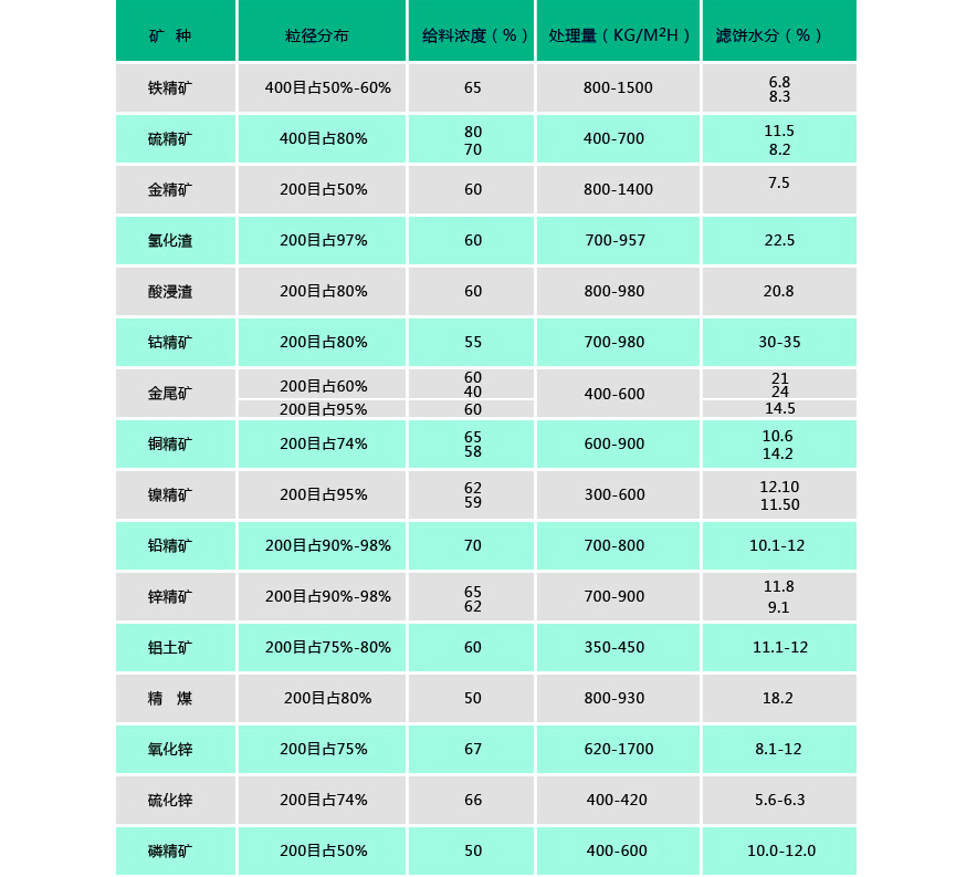 目前已廣泛應用于銅、鐵、金、銀、錫、鋁、鉛、鋅、鎳、鈷、鈀、鉬、鉻、銘、 硫、磷、煤、硅、石英、云母、錫土等精礦、尾礦脫水、化工行業(yè)氧化鋅、氧化鉛、硫化鋅、電解渣、浸出渣、爐渣 的脫水及環(huán)保污水泥廢酸處理等。物料細度從-200到-450目以及各種超細物料。